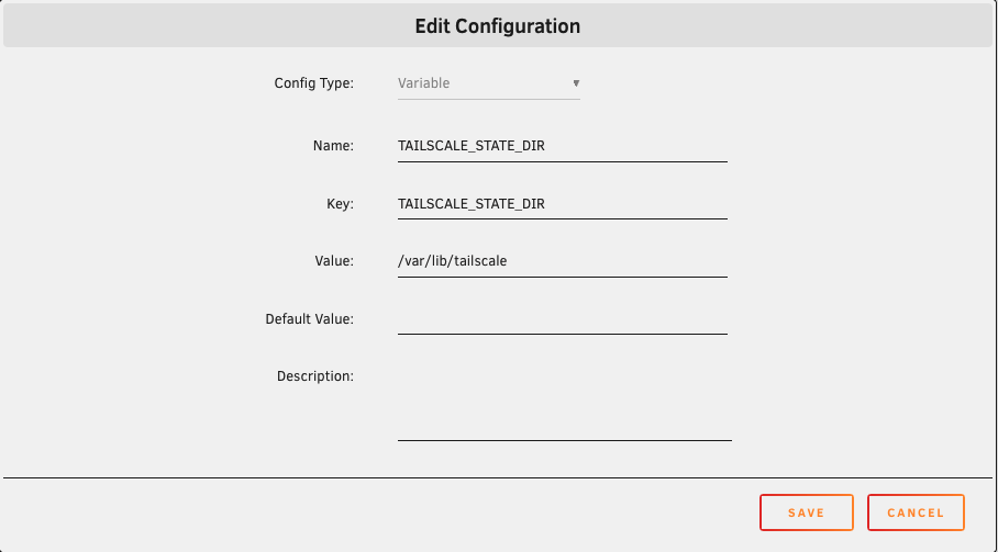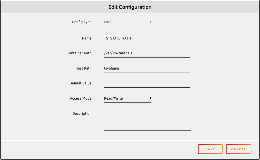 /var/lib/tailscale - Host Path: A unique name to create a Docker volume for the Tailscale state.